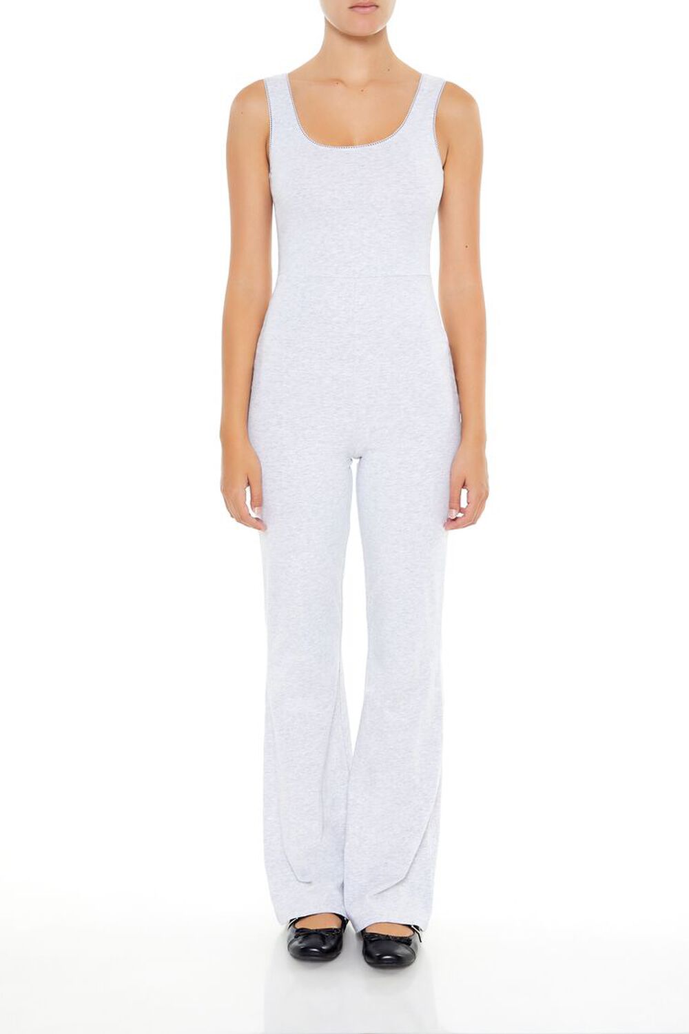 Details A knit jumpsuit featuring picot trim, square-cut neckline, sleeveless cut, and flare leg. Content + Care – 95% cotton, 5% spandex – Machine wash cold Size + Fit – Model is 5’8″ and wearing a Small